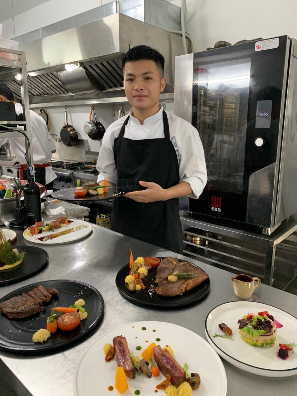 Hiện tại em giữ vị trí bếp chính Âu tại Nhà hàng Âu La- Tropica sau khi trải qua một vài vị trí công việc tại các Nhà hàng-khách sạn khác.
