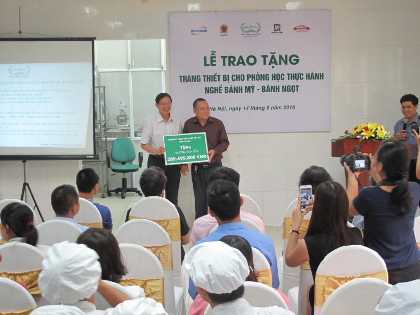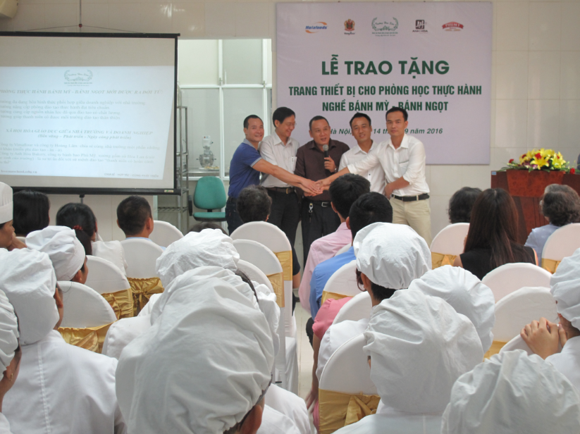 *) Chương trình Xã hội hóa giáo dục: giữa Trường Trung cấp Kinh tế - Du lịch Hoa Sữa với Công ty TNHH Sản xuất Bột mỳ Vimaflour; Ông Tạ Văn Tiến – Cựu học sinh Hoa Sữa - Giám đốc công ty Phú Mỹ; Ông Lê Quang Hòa – Cựu học sinh Hoa Sữa - Chủ chuỗi cửa hàng Bánh ngọt Pháp; Ông Nguyễn Mạnh Tảo – Cựu học sinh Hoa Sữa - Trưởng phòng nguyên liệu công ty Hoàng Lâm; Ông Lê Văn Sang – Cựu học sinh Hoa Sữa - Chủ xưởng gốm sứ Hòa Lan Trao tặng trang thiết bị cho phòng thực hành nghề bánh mỳ - bánh ngọt