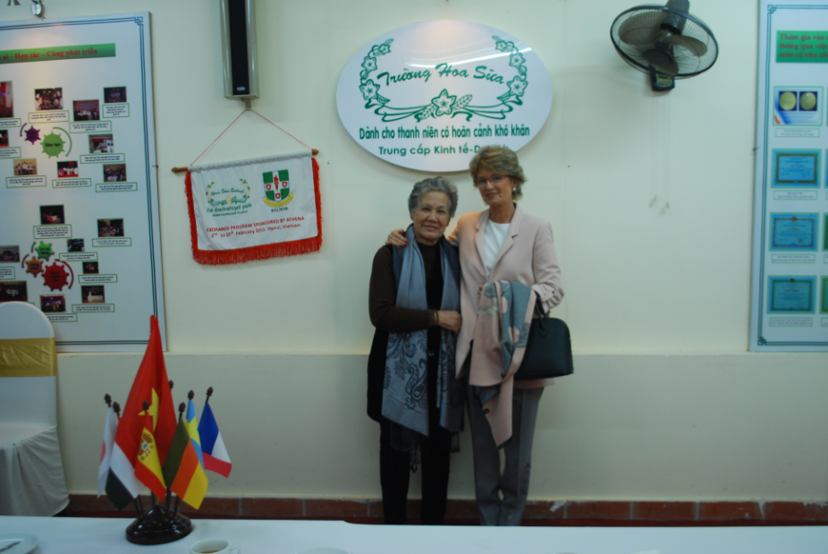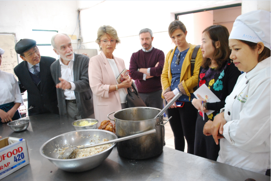 Các vị khách đã thăm quan một số lớp học của nhà trường như lớp May – Thêu, lớp Kỹ thuật chế biến món ăn, lớp Bánh mỳ - bánh ngọt và lớp Quản trị nhà hàng. Sự thân thiện, cởi mở của học sinh và giáo viên Nhà trường đã để lại những ấn tượng rất tốt đẹp. Tiếp đó, Ban giám hiệu Nhà trường đã có buổi làm việc cùng các vị khách tại phòng truyền thống. Tại đây, Bác Phạm Thị Vy – Sáng lập viên đã giới thiệu về quá trình hình thành, phát triển của trường Hoa Sữa từ những ngày đầu thành lập cũng như những khó khăn, thách thức gặp phải của Hoa Sữa trên chặng đường đã qua. Buổi làm việc đã diễn ra trong không khí cởi mở, thân thiện cùng những hứa hẹn về các chương trình hợp tác giữa Hoa Sữa và Đại sứ quán Tây Ban Nha; Hội Hữu nghị Việt Nam – Tây Ban Nha trong thời gian tới.