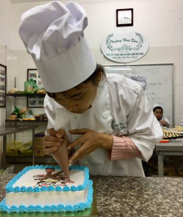 Hoàng Thị Sú thực hành trang trí bánh Gato