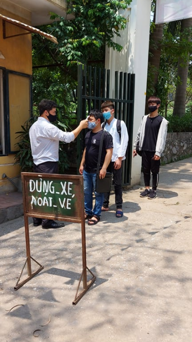 Công tác phòng dịch của nhà trường thực hiện rất tích cực để đảm bảo an toàn cho học sinh, trước khi vào trường các em được đo thân nhiệt và phát khẩu trang miễn phí nếu chưa có.