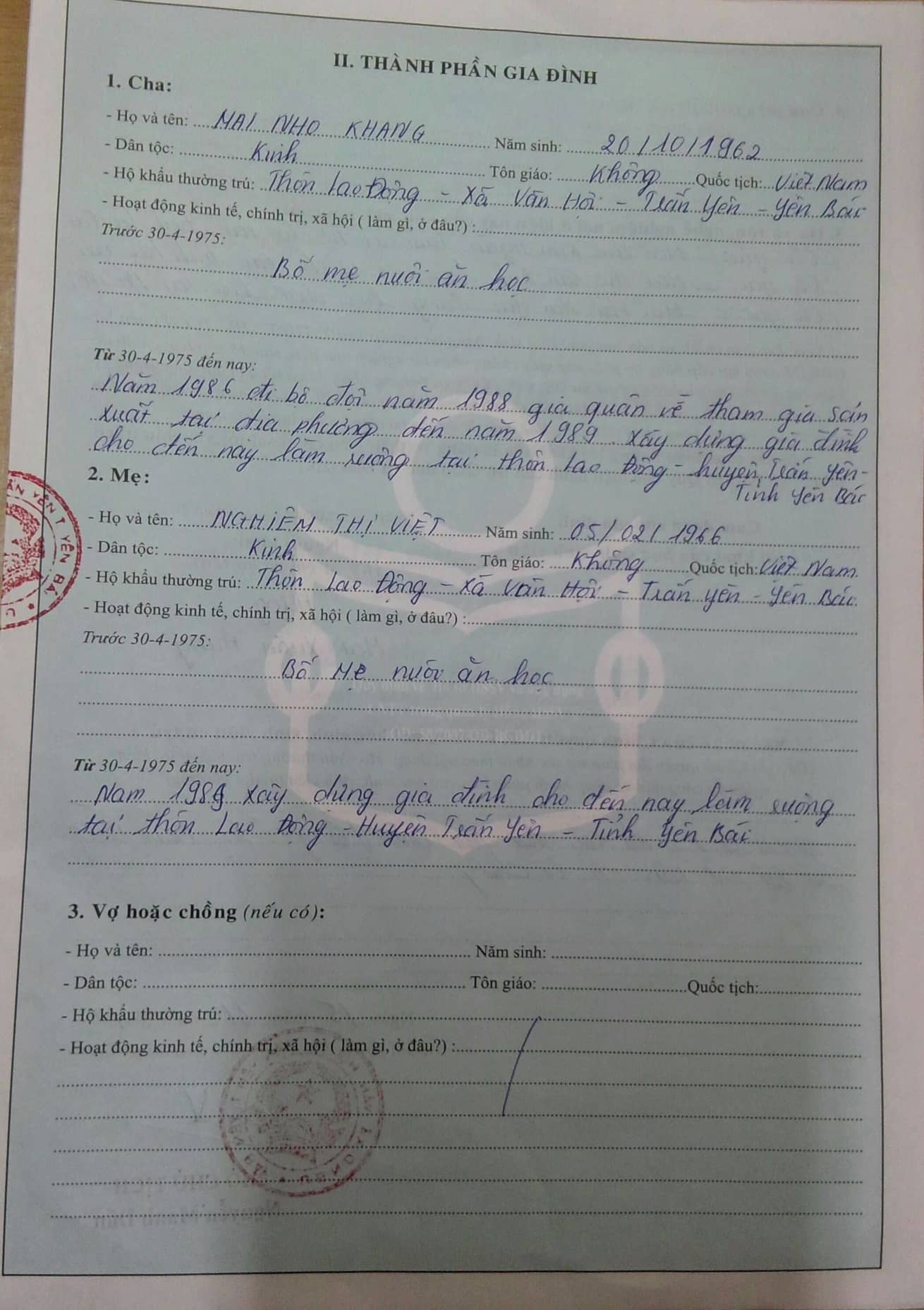 (2) Hồ sơ Học sinh – Sinh viên (Làm cả 2 bản và dán ảnh có dấu xác nhận của UBND xã/phường) (Tải Mẫu Tại đây)