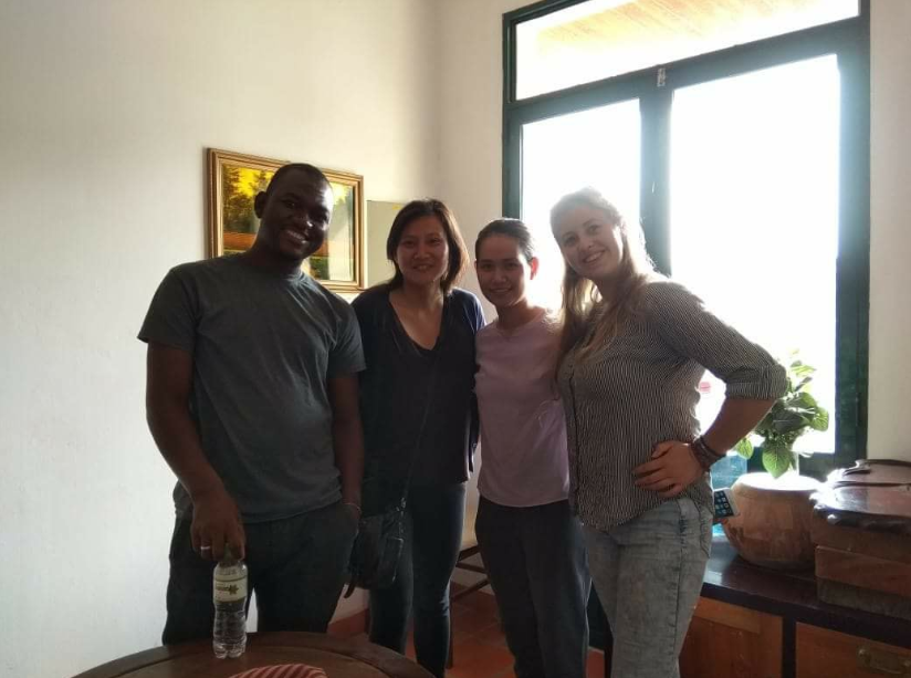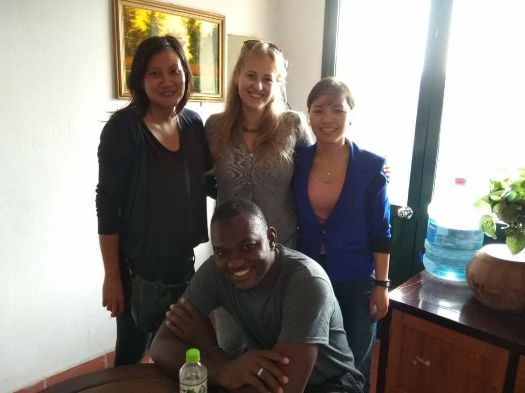 Tình nguyện viên Anna chụp ảnh lưu niệm tại Phòng họp Trường Hoa Sữa