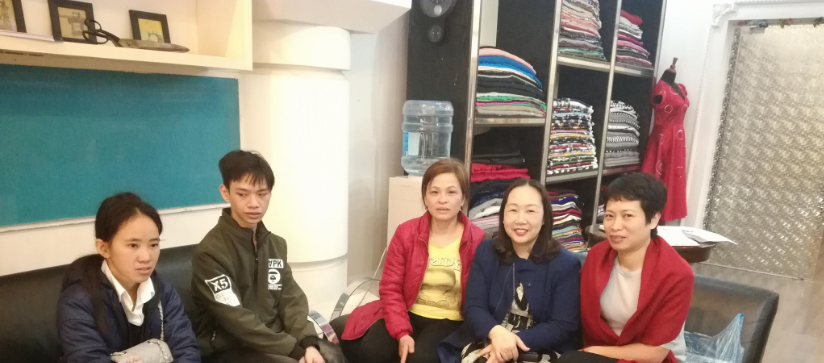 Nhân viên Nhà mốt Xuân - Cựu học sinh về thăm Trung tâm May thêu