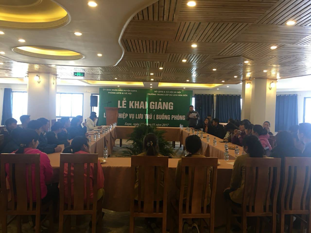 Vào chiều ngày 27/11/2017, Trường trung cấp Kinh tế - Du lịch Hoa Sữa đã tổ chức Lễ Khai giảng bồi dưỡng nghiệp Lưu trú Buồng cho 35 học viên là dân tộc thiểu số và gia đình có hoàn cảnh khó khăn của huyện Sapa – tỉnh Lào Cai.