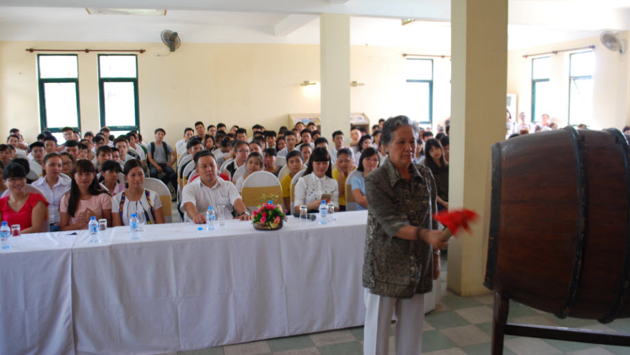 Bác Phạm Thị Vy - Sáng lập viên đánh hồi trống khai giảng năm học mới 2016-2017