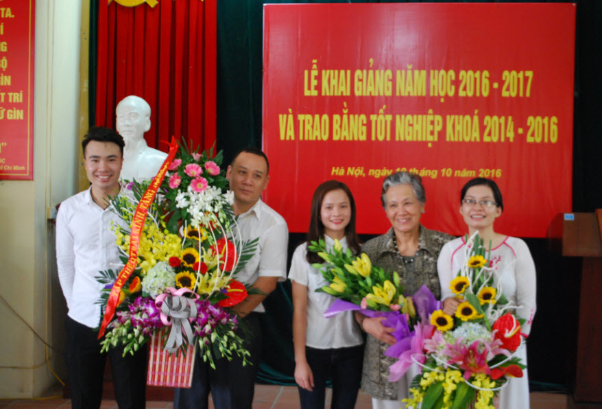 Ban giám hiệu nhận những bó hoa tươi thắm từ học sinh các khóa