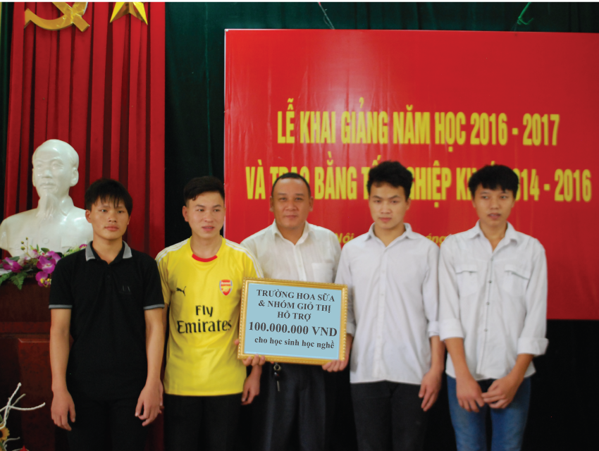 Với mục tiêu "Xã hội hóa giáo dục" trường Hoa Sữa cùng với các cá nhân, tập thể và các tổ chức hỗ trợ kinh phí đào tạo, ăn ở cho thanh niên có hoàn cảnh khó khăn như Ông John B Crowley (quốc tịch Mỹ) đã hỗ trợ 3 suất học bổng, Hội thiện nguyện Giỏ Thị cho trẻ vùng cao đã hỗ trợ 7 suất học bổng....Hy vọng rằng, trường Hoa Sữa sẽ luôn nhận được sự ủng hộ từ các cá nhân, tập thể và các tổ chức để tăng số lượng học sinh có hoàn cảnh yếu thế qua đào tạo và giới thiệu việc làm (miễn phí).
