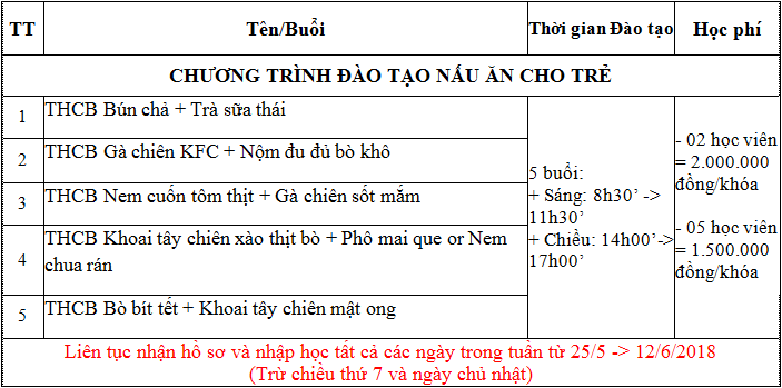 Dự kiến khai giảng 30/5/2018 |