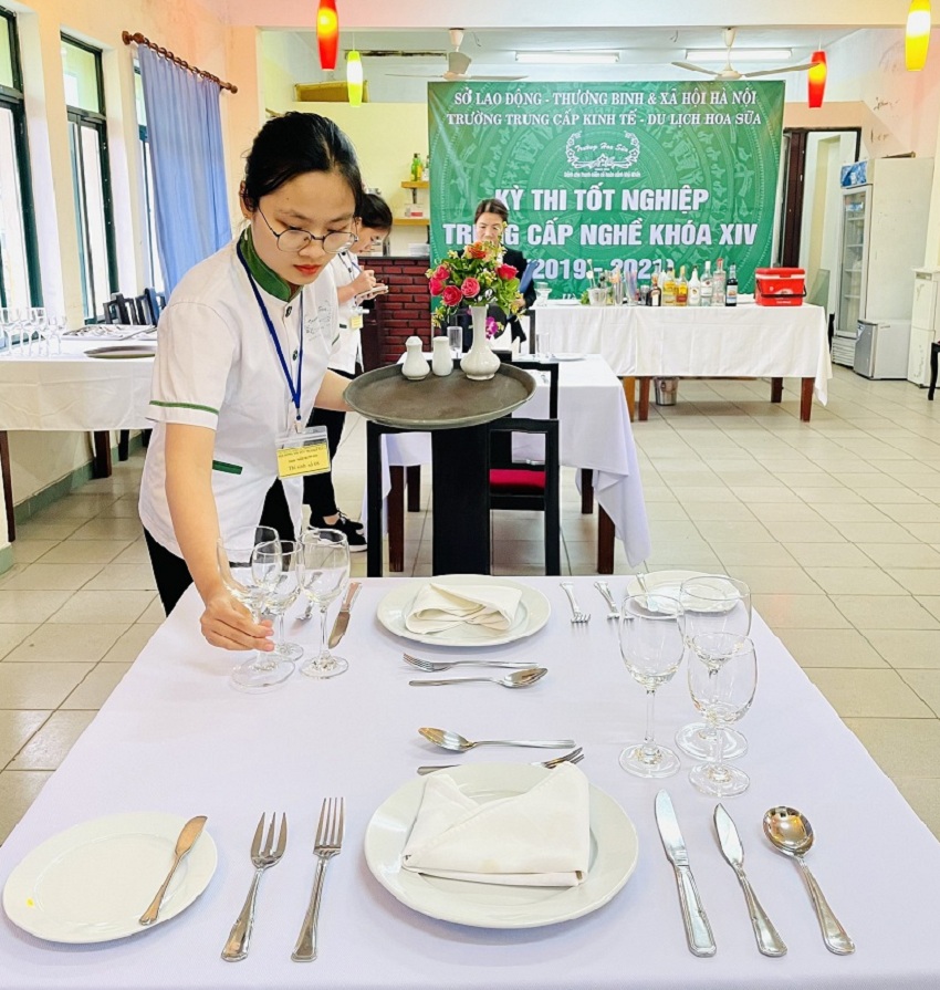 Học sinh Thực hành Nghiệp vụ setup bàn Tiệc