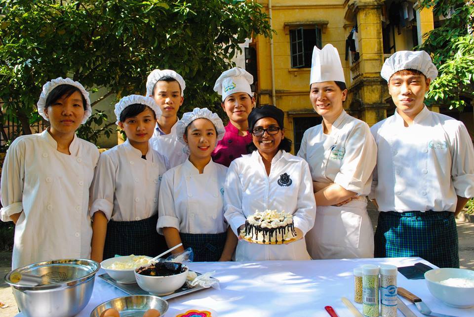 Chuyên gia Bibi Leema Ganie - TNV tổ chức Wusc Canada hướng dẫn Thầy và Trò Hoa Sữa cách làm, trang trí Bánh mang đậm phong cách Châu âu tại Trường Hoa Sữa