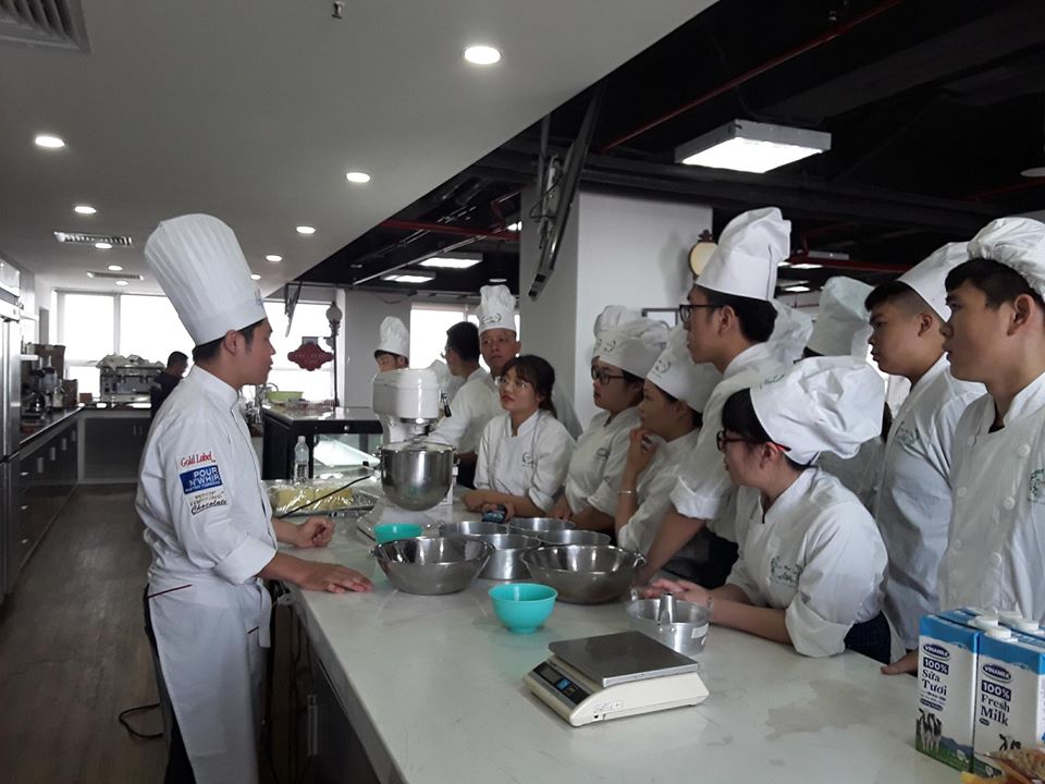 Chuyên gia Công ty TNHH Sản xuất Bột mỳ Vimaflour hướng dẫn học viên Trường Hoa Sữa công thức dòng Bánh mới