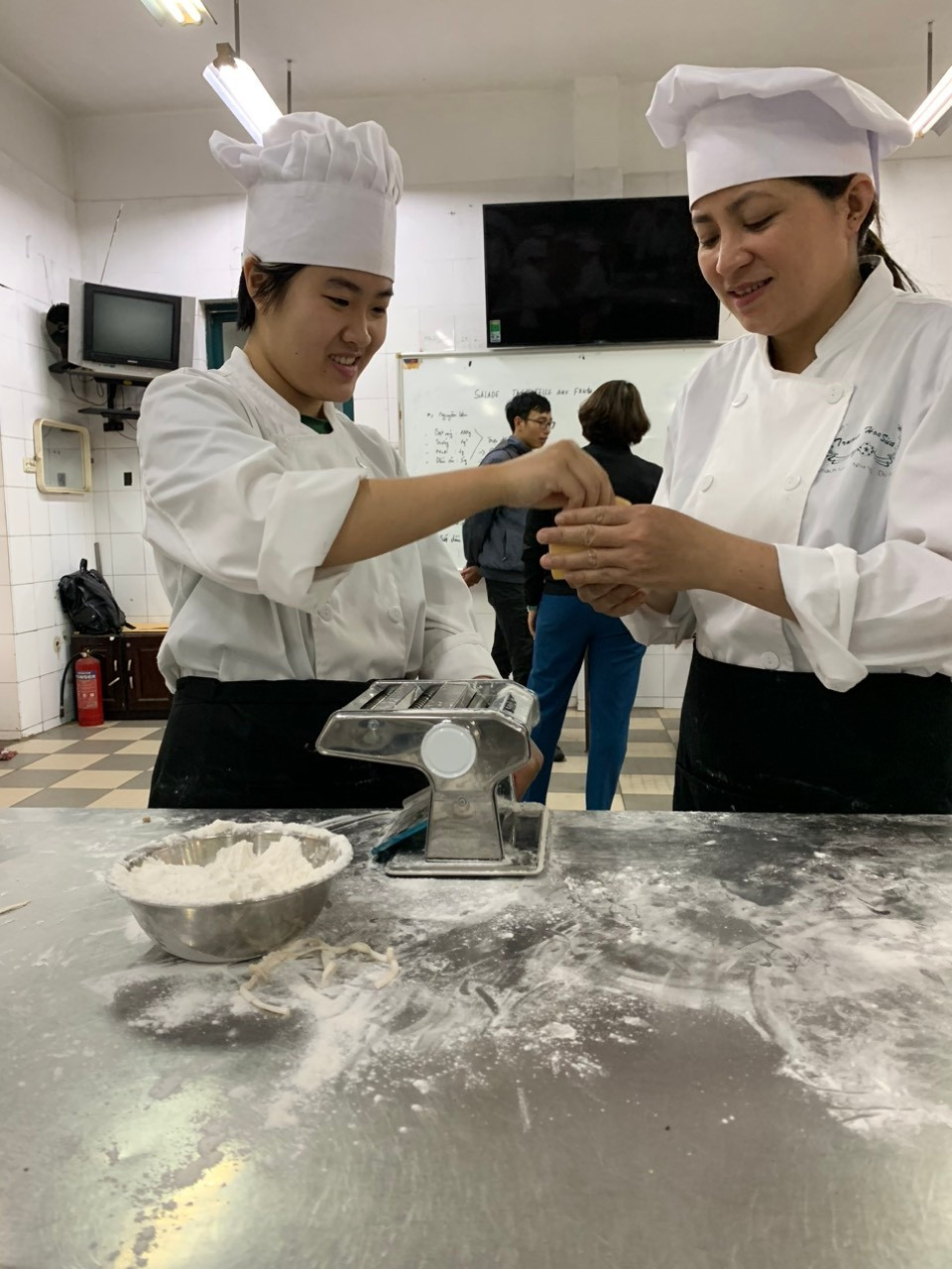 Trong buổi thực hành kĩ năng chế biến món ăn Âu, các bạn học sinh đã có cơ hội trải nghiệm và học hỏi các kỹ thuật trần và luộc mì tươi. Các em học sinh đã tham gia vào quá trình chuẩn bị nguyên liệu, từ việc lựa chọn mì tươi chất lượng đến việc chuẩn bị nước sôi để luộc mì mềm mịn.