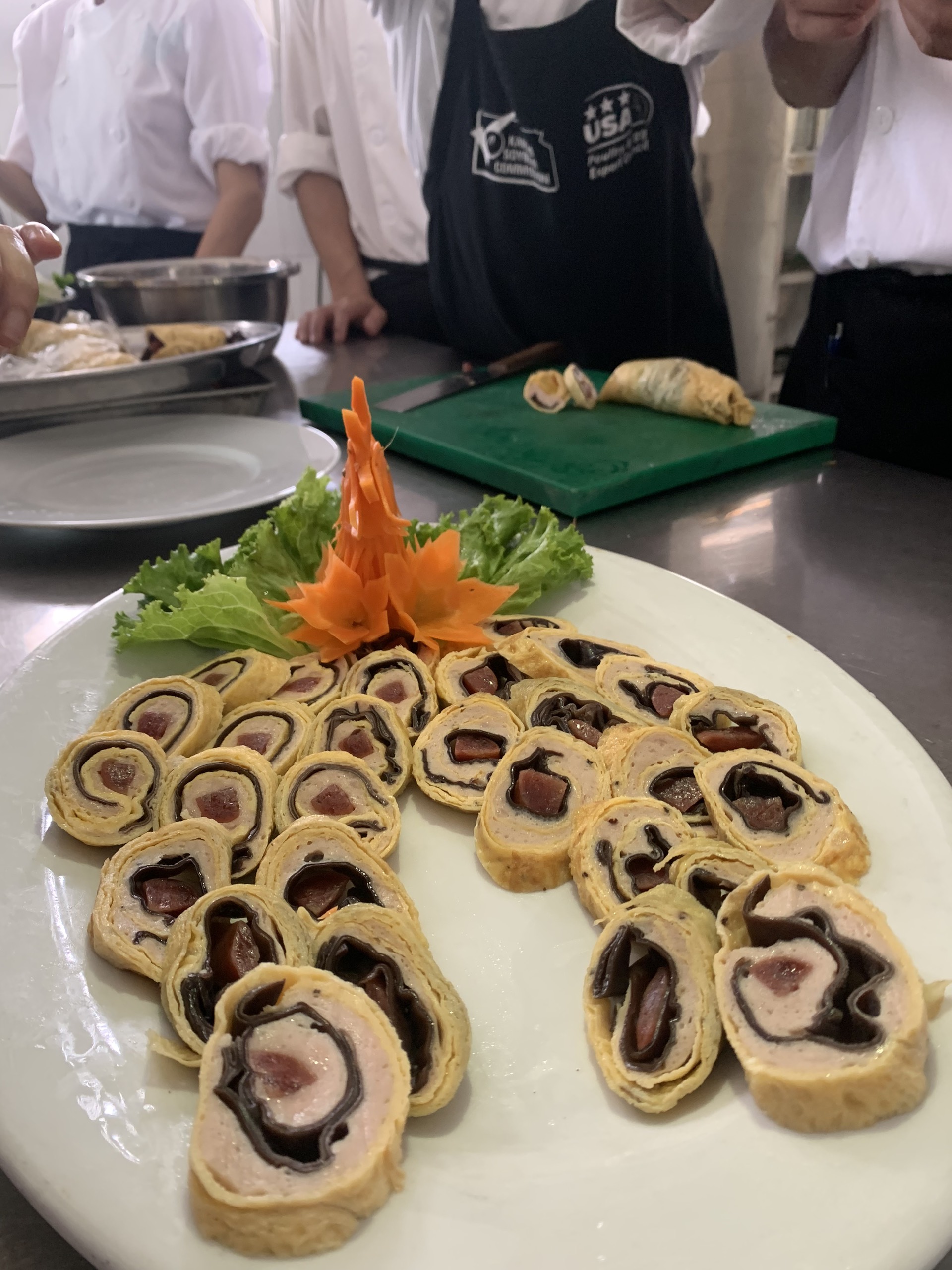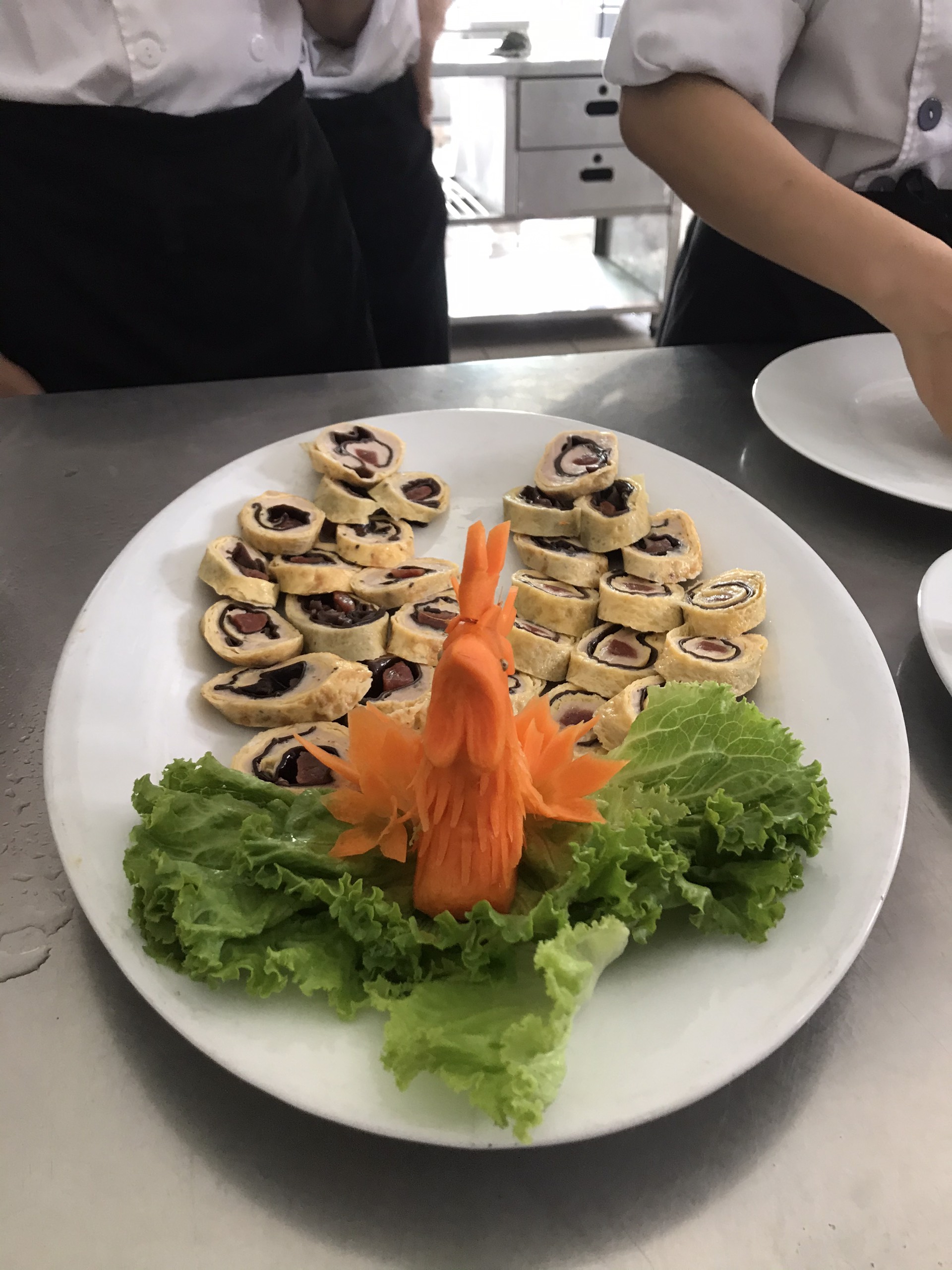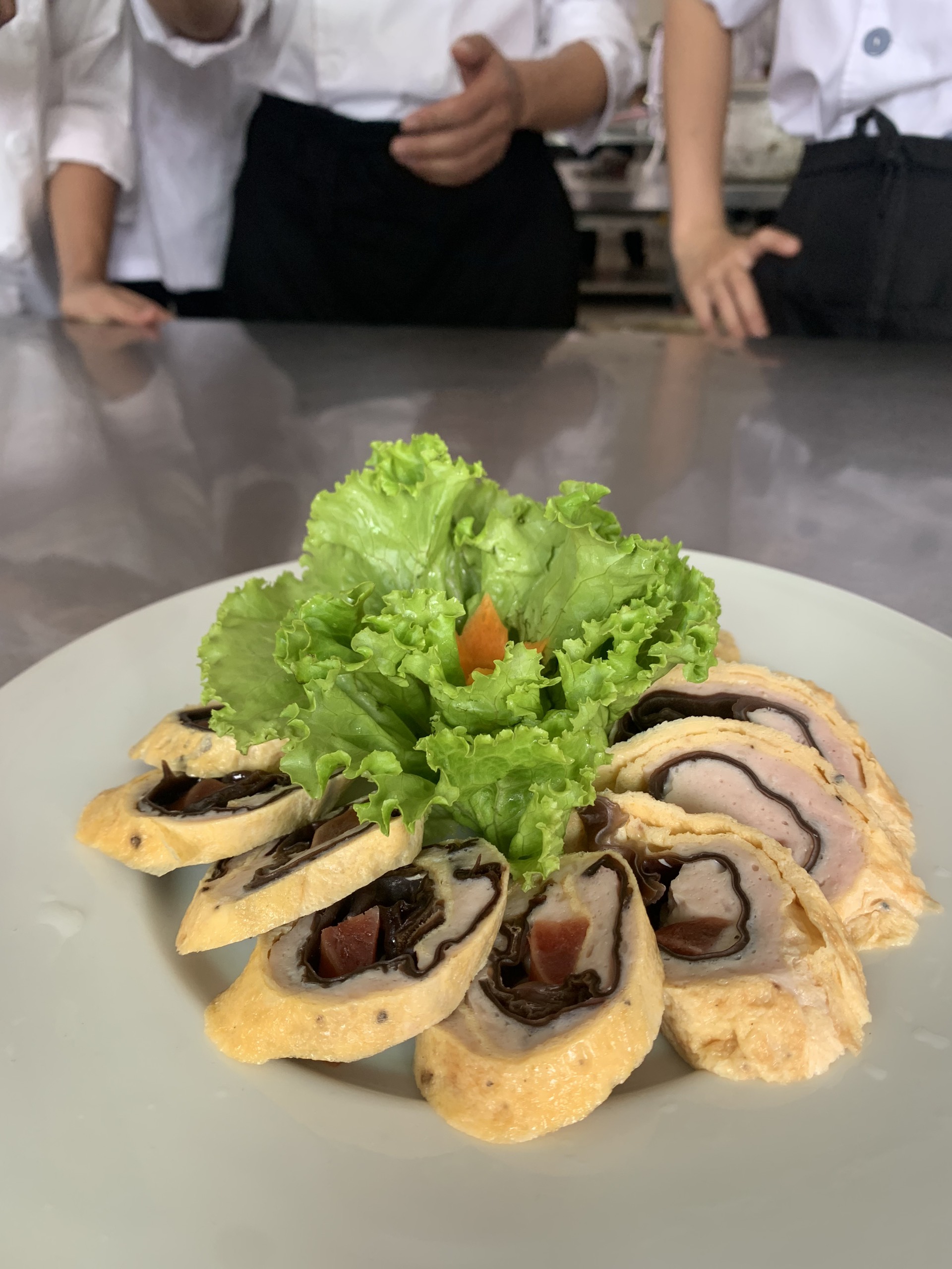 Hôm qua chúng tôi đã mời các bạn ghé thăm giờ thực hành của lớp bánh mỳ bánh ngọt, nơi chúng tôi đã giới thiệu đến các bạn hai sản phẩm thú vị là Bánh Baguette - một nét văn hóa Pháp tinh tế và Bánh phô mai, một biến thể ngon lành của Bánh mỳ kết hợp với phô mai. Hôm nay, chúng tôi rất vui được giới thiệu đến các bạn món Trứng hấp vân từ lớp Chế biến món ăn Á K28B.