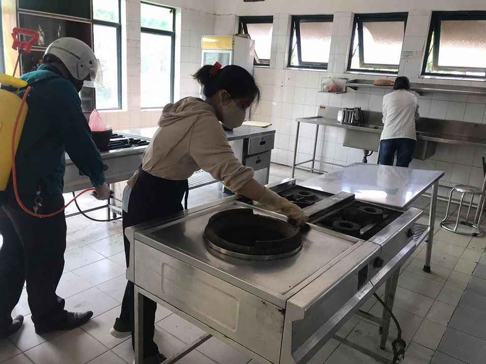 Trước khi học sinh quay trở lại học tập Nhà trường đã tiến hành làm vệ sinh các phòng học, xưởng thực hành, phun thuốc khử trùng khuôn viên các lớp học.