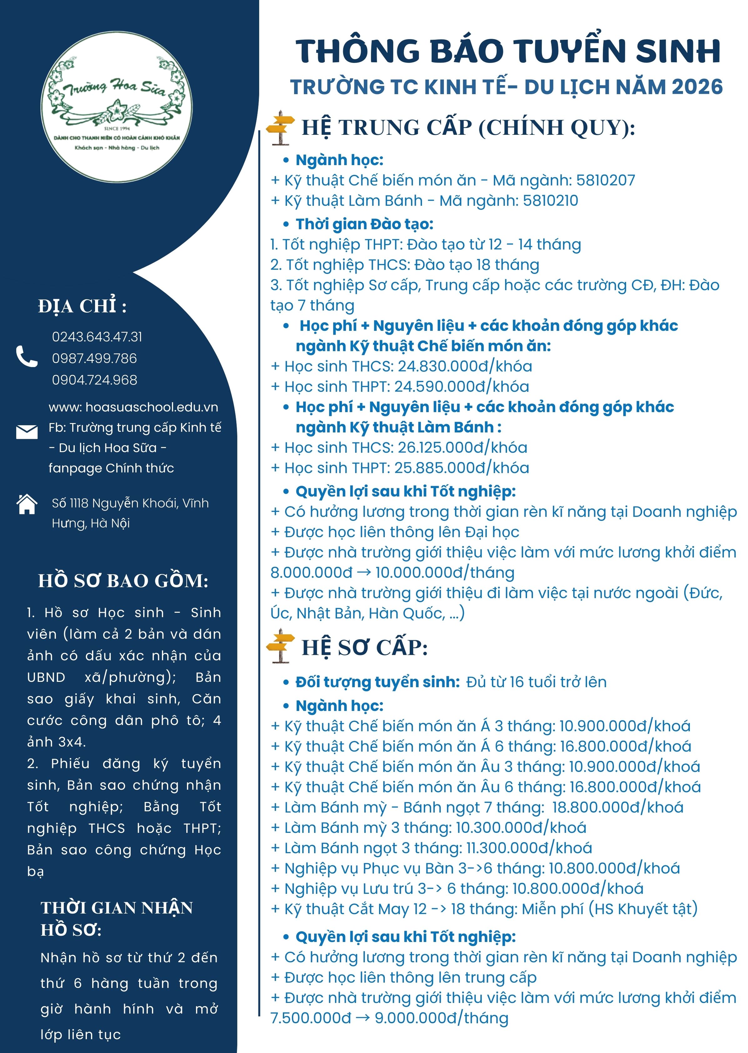 TRƯỜNG TC KINH TẾ - DU LỊCH HOA SỮA THÔNG BÁO TUYỂN SINH NĂM 2026 21/01/2026 Chị Oanh 0 Bình luận Tags : Chia sẻ bài viết: